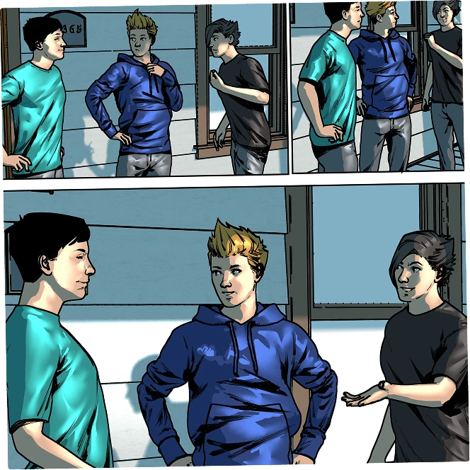 Concepts and storyboards begin to introduce our heroes – the artists. Many discussions take place between the creative writer and the meticulous artists about their visions of the look and what the writer imagined for each scene, panel and page.